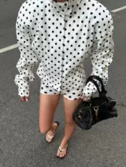 Stylish Design: Loose-fit polka dot cardigan with a trendy Korean aesthetic, perfect for casual and elegant looks.