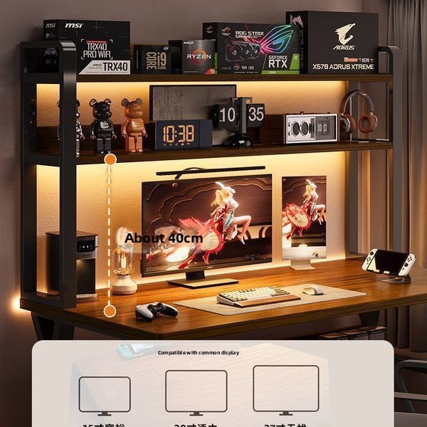 Modern Integrated Computer Desk with Bookshelf