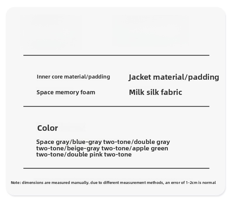 Material: Memory foam (filler), other (outer cover).