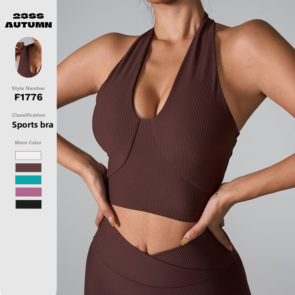 Halter Neck Design: Stylish and secure fit for various activities.